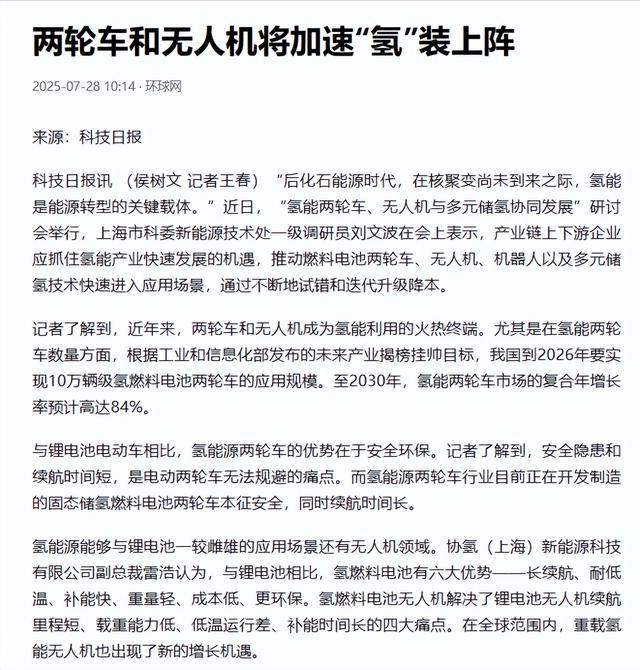 工信部通过未来产业揭榜挂帅机制,明确到2026年要实现10万辆级的氢燃料电池两轮车应用规模。这个目标带动各地政府出台具体措施,成都、佛山之外,其他城市也在跟进示范项目。